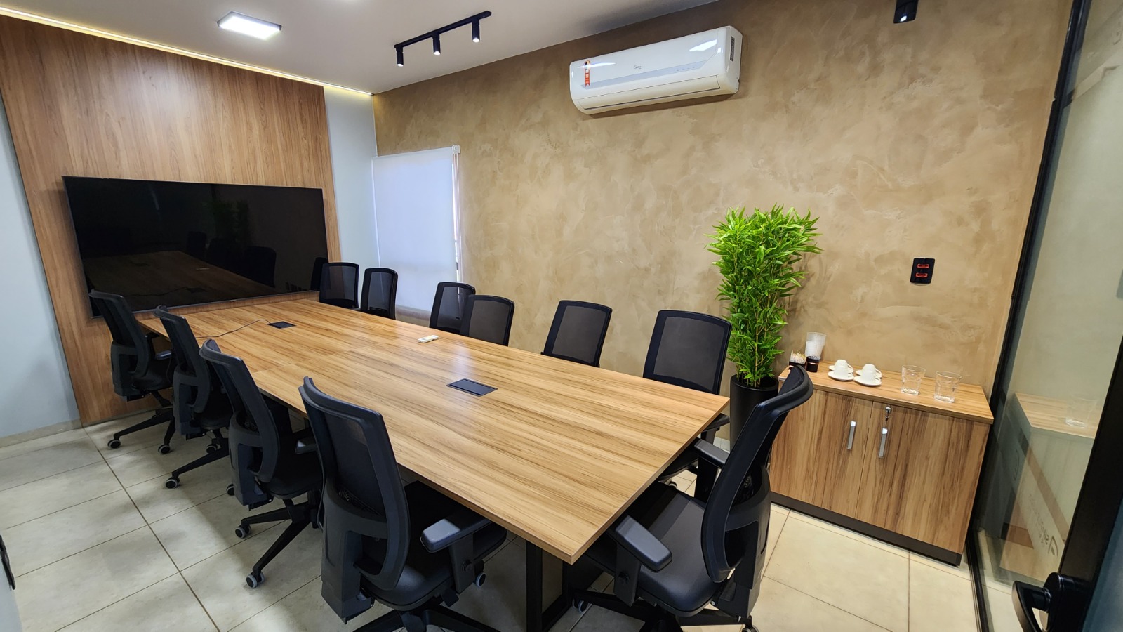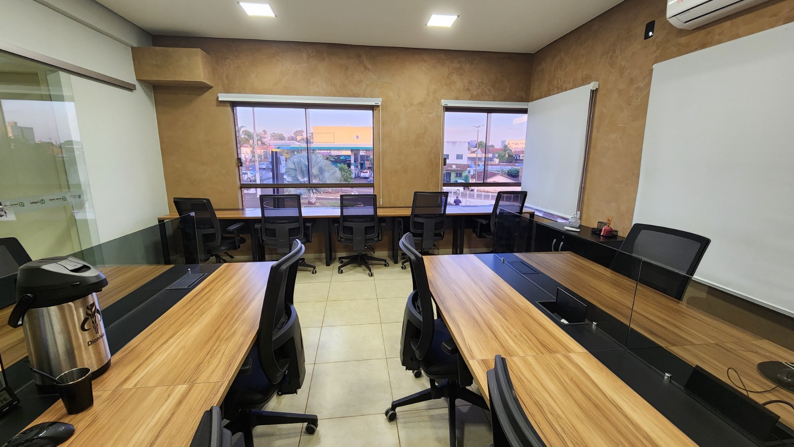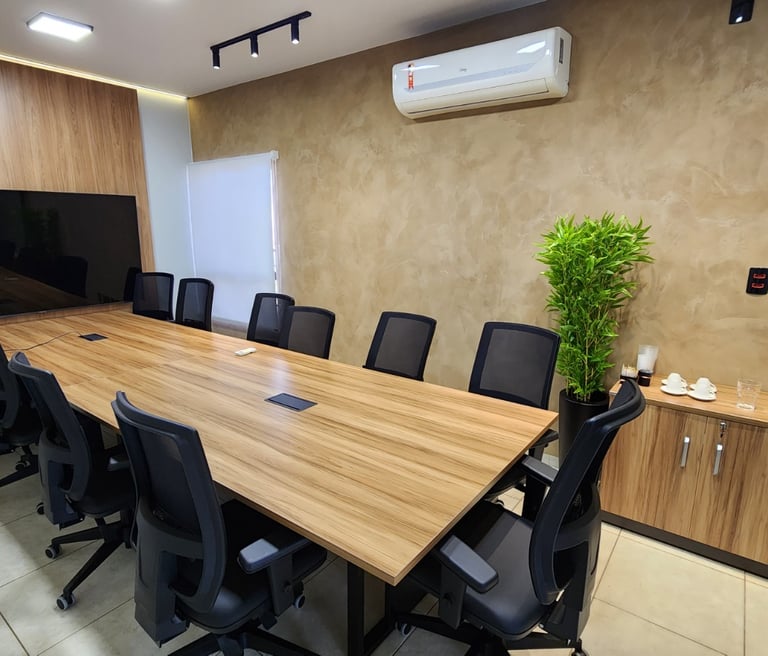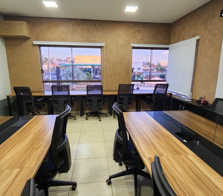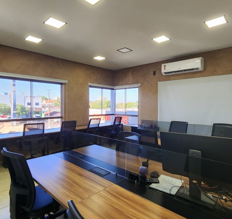 Ótimo para reuniões comerciais, estudos e treinamentos. Conta com espaço coworking e salas de tamanhos variados com TV/HDMI, água e café.