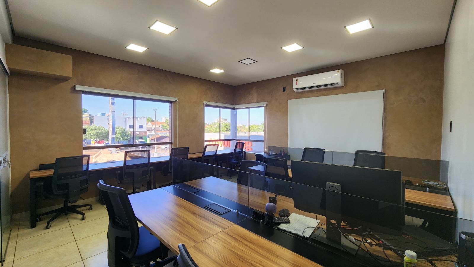 Cadeiras ergonômicas, vista privilegiada, copa equipada e estacionamento à disposição.